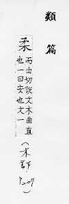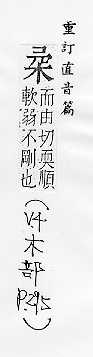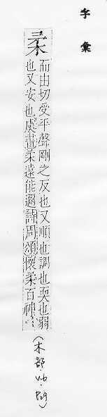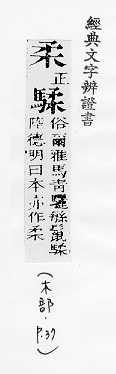 植物初生而嫩:~荑(初生嫩芽,喻女子白嫩的手)。 软,不硬:~软。~韧。~嫩。~滑。 软弱,与刚相对:~懦。~弱。刚~相济。 温和:~顺。~和。~曼(柔和妩媚)。~情。