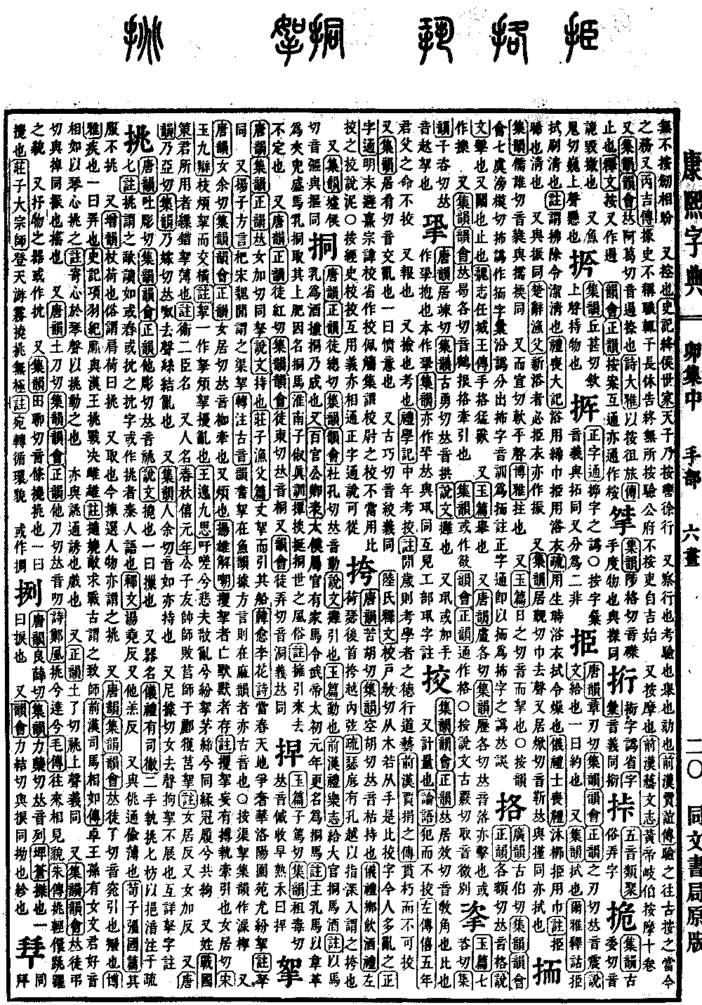 《唐韵》《集韵》《正韵》𠀤女加切。同拏。《说文》持也。《庄子·渔父篇》丈挐而引其船。《韩愈·李花诗》当春天地争奢华,洛阳园苑尤纷挐。《注》拏同。 又《扬子·方言》杷,宋魏闲谓之渠挐。《转注古音》韵书挐在鱼韵,据方言则在麻韵者,亦古音也。◎按渠挐,集韵作淭𣖹。 又《唐韵》女余切《集韵》《韵会》《正韵》女居切,𠀤音袽。牵也。又烦也。《扬雄·解嘲》攫挐者亡,默默者存。《注》攫挐,妄有搏执牵引也。女居切。《宋玉·九辩》枝烦挐而交横。《注》挐一作拏。烦挐,扰乱也。《王逸·九思》吁嗟兮悲夫,散乱兮纷挐。茅丝兮同䋴,冠履兮共絇。 又姓。《战国策》君所用者,緤错挐薄也。《注》衞二臣名。 又人名。《春秋·僖元年》公子友帅师败莒师于郦,获莒挐。《注》女居反。又女加反。 又《唐韵》乃亚切《集韵》乃嫁切,𠀤呶去声。丝结乱也。 又《集韵》人余切,音如。亦持也。 又尼据切,女去声。拘挐,不展也。互详拏字注。