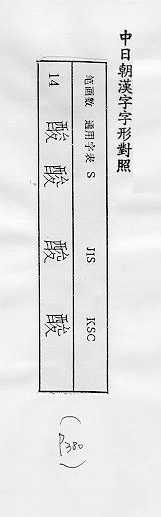 中日朝漢字字形對照