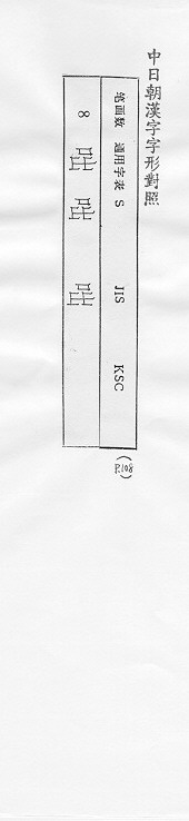 中日朝漢字字形對照