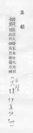 男女嫁娶:婚~。~缘。 由婚姻关系而结成的亲属:~亲。联~。 较间接的亲戚关系:~故。~旧。