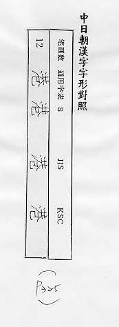 中日朝漢字字形對照