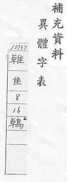 本页面所展现之内容,仅作为学术研究预览之用,更多异体字的专业资料请移步至《異體字字典》臺灣學術網路十一版(正式五版)