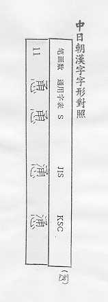 中日朝漢字字形對照