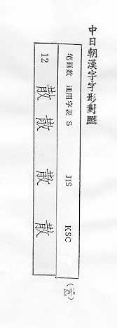 中日朝漢字字形對照