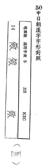 中日朝漢字字形對照