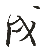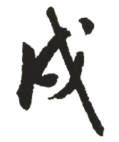 (指事。从戊,含一。不详。戊(wù)武器。本义:地支的第十一位)