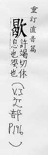 休息:~憩。~脚。~晌。安~。~凉。~心。 停止:~止。~业。~工。停~。间~。~班。~后语。 很短的一段时间:过了一~。