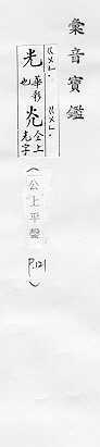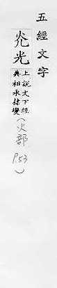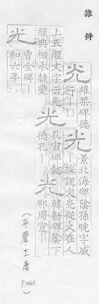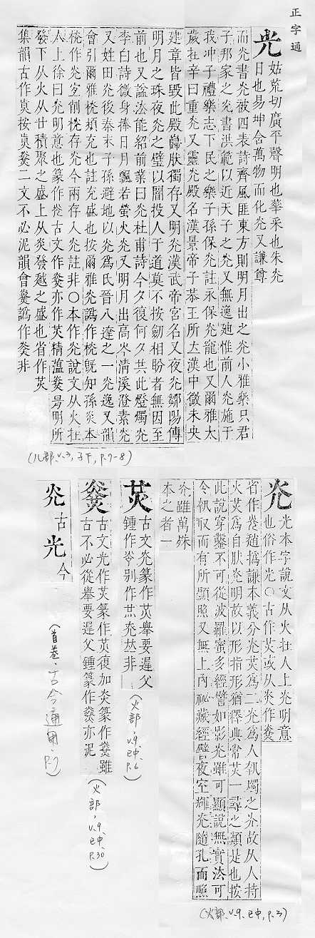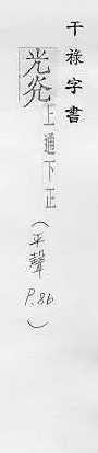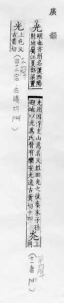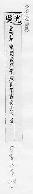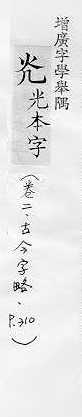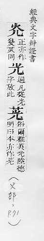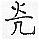 太阳、火、电等放射出来耀人眼睛,使人感到明亮,能看见物体的那种东西:阳~。月~。火~。~华(明亮的光辉)。 荣誉:~临(敬辞,意含宾客来临给主人带来光彩)。~顾。~复。 使显赫:~大。~宗耀祖。 景物:春~明媚。 光滑:~滑。~洁。~泽。 完了,一点不剩:杀~烧~。吃~用~。 露着:~膀子。 单,只:~剩下一口气。 姓。