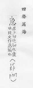 - 心,部外笔画:5,总笔画:9