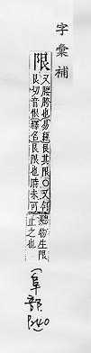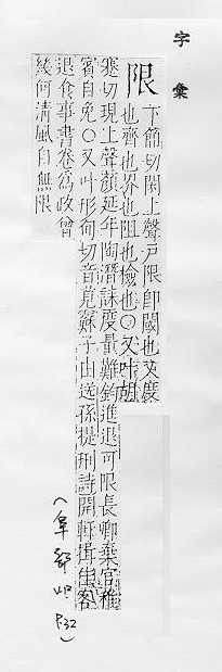指定的范围:期~。界~。权~。局~。~额。 指定范围:~制。~于。~期。~价(官方指定最高或最低价格,不得超越)。无~。 门槛:门~。 险阻:关~。