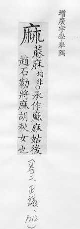 姓。如春秋時齊國有麻嬰,明代有麻三衡。