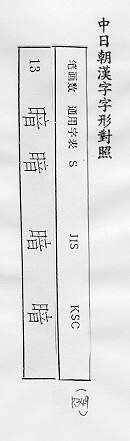 中日朝漢字字形對照