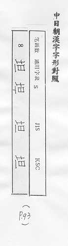 中日朝漢字字形對照