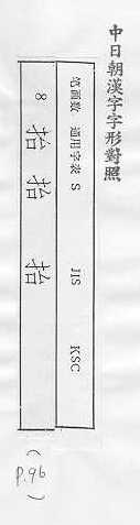 中日朝漢字字形對照