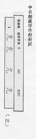中日朝漢字字形對照
