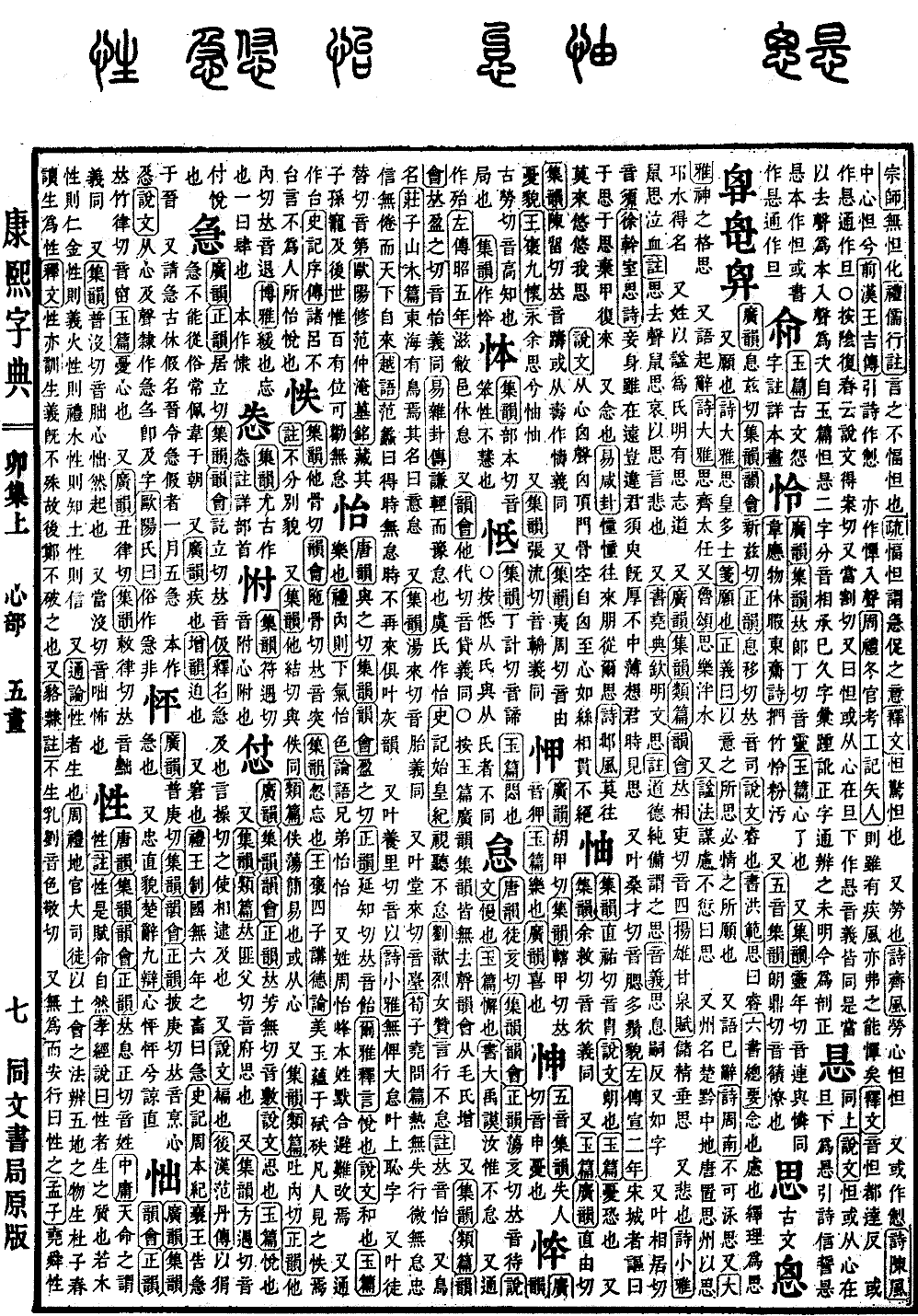 《广韵》《正韵》居立切《集韵》《韵会》讫立切,𠀤音伋。《释名》急,及也,言操切之使相逮及也。 又《说文》褊也。《后汉·范丹传》以狷急不能从俗,常佩韦于朝。 又《广韵》疾也。《增韵》迫也。 又窘也。《礼·王制》国无六年之畜曰急。《史记·周本纪》囊王告急于晋。 又请急,古休假名。晋令急假者,一月五急。 本作㤂。《说文》从心及声。隶作急,刍即及字。《欧阳氏曰》俗作𢚩,非。