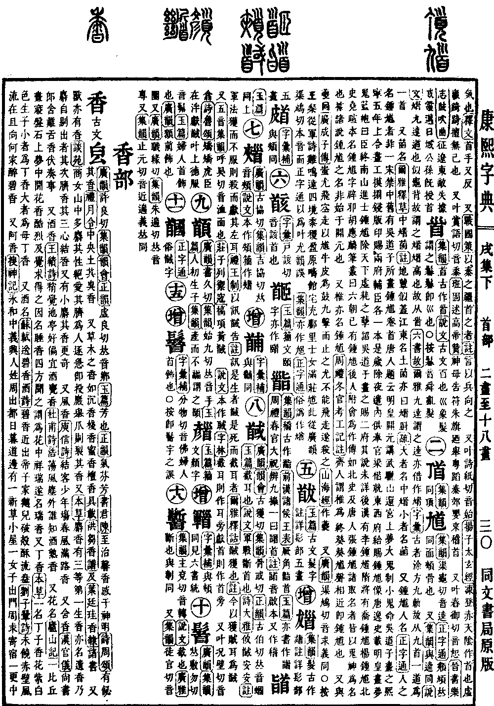《集韵》渠龟切,音逵。《正字通》頯頄𠀤同。面颊骨也。 又《集韵》与逵同。《说文》𩠒,九达道也。似龟背,故谓之𩠒。𩠒,高也,故从𩠐。《六书故》尔雅,九达谓之逵。亦借作𩠒。《字汇》古者涂方九轨,故从九首,一道为一首。 又菌名。《尔雅·释草》中𩠒菌。《注》地蕈,似盖,江东名土菌,亦曰𩠒厨。《疏》大者名中𩠒,小者名菌。 又钟馗,人名。《正字通》人之名钟馗者非一。宋禁中旧有吴道子所画钟馗,卷首唐人题云:明皇开元,讲武骊山,还宫,上梦大鬼制小鬼,命吴道子画之。熙宁五年,上令画工摸搨,锓版印赐两府辅臣各一本,是岁除夜,遣内供奉官梁楷就东西府给赐钟馗像。唐逸史载,明皇画梦鬼蓝袍,曰:臣终南山进士钟馗,除天下虚耗之孽。诏吴道子画之赐二府,其说未详。后汉有李钟馗,隋将有乔钟馗,杨钟馗,北史尧暄本名钟馗,字辟邪。胡应麟笔丛曰:六朝已有钟馗,后人附会为作傅,如北史及唐人张钟馗,诸取名者,皆以鬼神为名也。据诸说,钟馗之名,非始于开元也。 又椎亦名钟馗。《周礼·冬官考工记注》齐人谓椎为终葵。葵馗声相近,即钟馗也。 又与夔同。《广成子传》蚩尤飞空走,以馗牛皮为鼓,九击而止之,尤不能飞走,遂杀之。《山海经》作夔。 又《广韵》渠鸠切,音求。义同。◎按王粲从军诗:鸡鸣达四境,黍稷盈原畴。馆宅充鄽里,士女满庄馗。此从广韵渠鸠切本音,而正字通以为叶尤韵,误。 《集韵》亦作𠃳。《正字通》俗譌作𠄁。