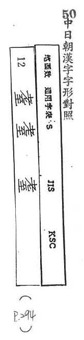 中日朝漢字字形對照