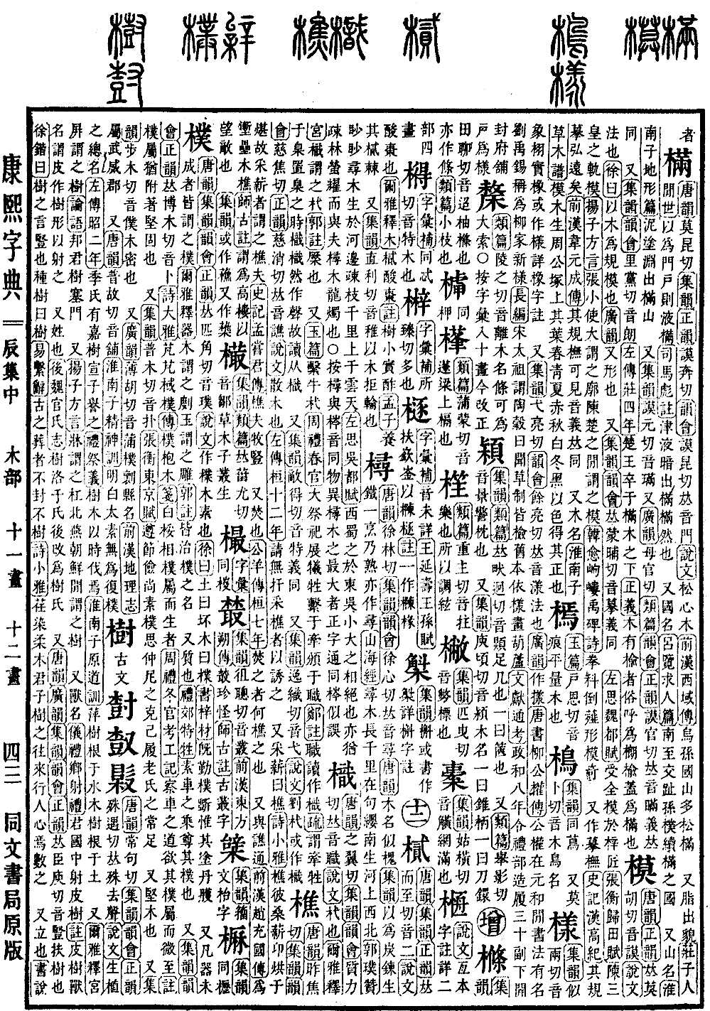 《唐韵》《正韵》𠀤莫胡切,音谟。《说文》法也。《徐曰》以木为规模也。《广韵》又形也。 又《集韵》《韵会》𠀤蒙晡切,音摹。义同。 《左思·魏都赋》受全模于梓匠。《张衡·归田赋》陈三皇之轨模。《扬子·方言》张小使大谓之廓。陈楚之闲谓之模。《韩愈·岣嵝禹𥓓诗》拳科倒薤形模奇。 又作摹、橅。《史记·汉高纪》其规摹弘远矣。《前汉·韦元成传》其规橅可见,音义𠀤同。 又木名。《淮南子·草木谱》模木生周公冢上,其叶春靑,夏赤,秋白,冬黑,以色得其正也。