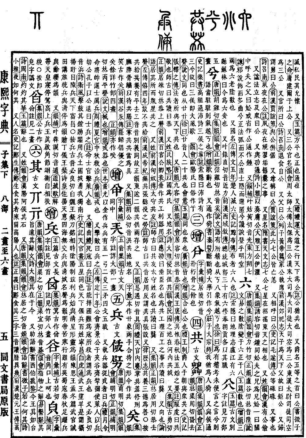 〔古文〕丌亓《唐韵》《集韵》《韵会》渠之切《正韵》渠宜切,𠀤音碁。《韵会》指物之辞。《易·系辞》其旨远,其辞文。《诗·大雅》其在于今。又助语辞。《书·西伯戡黎》今王其如台。《诗·周南》灼灼其华。《玉篇》辞也。又姓。《韵会》汉阳阿侯其石。又《唐韵》《集韵》《韵会》𠀤居之切,音姬。《韵会》语辞。《书·微子》若之何其。《诗·小雅》夜如何其。又人名。《史记·郦生传》郦生食其者,𨻰留高阳人也。《注》正义曰:郦食其,三字三音,读历异几。《前汉·楚元王传》高祖使审食其留侍太上皇。《注》师古曰:食音异,其音基。又山名。《前汉·武帝纪》四月,幸不其。《注》其音基,山名。《广韵》在琅邪。又地名。《韵会》祝其,即夹谷也。又《集韵》《韵会》居吏切。《正韵》吉器切,𠀤音寄。《韵会》语已辞。《诗·桧风》彼其之子。通作记。《礼·表记》引《诗》彼记之子。又通已。《左传·襄二十七年》引《诗》彼己之子。又《韵会》或作忌。《诗·郑风》叔善射忌。