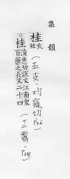 中国广西壮族自治区的别称:~剧。~系军阀。 〔~花〕常绿小乔木或灌木,叶椭圆形,开白色或暗黄色小花,有特殊的香气,供观赏,亦可做香料,通称“木犀”;简称“桂”,如“金~”,“~子飘香”、“~轮”(月的别称,相传月中植桂花。亦称“桂魄”)。 姓。