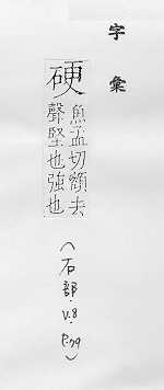 坚固,与软相对:坚~。~木。~煤。~卧。~席。~币。~笔(钢笔、铅笔、圆珠笔的统称)。~化。~件(计算机系统的组成部分,构成计算机的各个元件、部件和装置的统称)。~碰~(喻用强硬对付强硬,或强手对强手。) 刚强有力:强~。~朗。~实。~气(a.刚强,有骨气;b.有正当理由,于心无愧。气读轻声)。~骨头。欺软怕~。 固执;勉强:生~。~撑。~是。~顶。~挺。生拉~拽。 能力强,质量好:~手。~功。过得~。