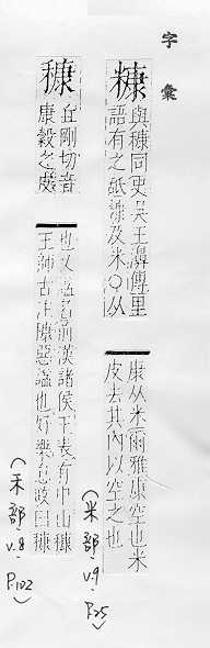 稻、麦、谷子等的子实所脱落的壳或皮:米~。糟~。~秕。~醛(有机化合物,是制造塑料、合成纤维、合成橡胶、药物等的原料)。 萝卜等因失掉水分而中心呈蜂窝状。
