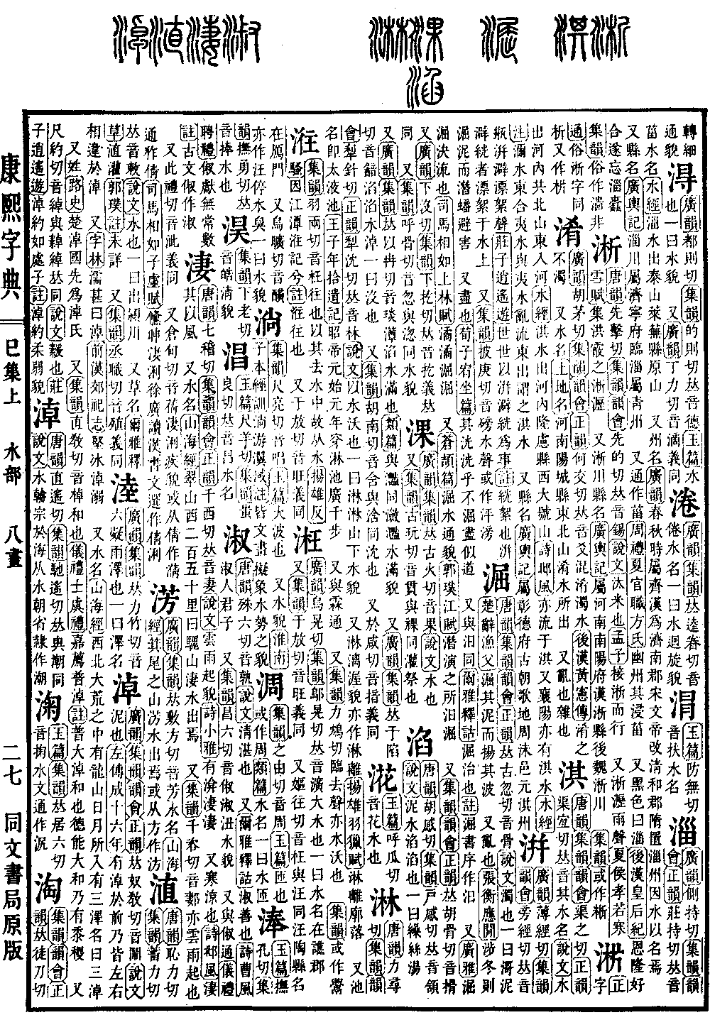 《广韵》《集韵》《韵会》《正韵》𠀤奴敎切,音闹。《说文》泥也。《左传·成十六年》有淖于前,乃皆左右相违于淖。 又《字林》濡甚曰淖。《前汉·郊祀志》坚冰淖溺。 又水名。《山海经》西北大荒之中有龙山,日月所入。有三泽,名曰三淖。 又姓。《路史》楚淖国先为淖氏。 又《集韵》直敎切,音棹。和也。《仪礼·士虞礼》嘉荐普淖。《注》普,大。淖,和也。德能大和,乃有黍稷。 又尺约切,音绰。与繛绰𠀤同。《说文》𦅻也。《庄子·逍遥游》淖约如处子。《注》淖约,柔弱貌。