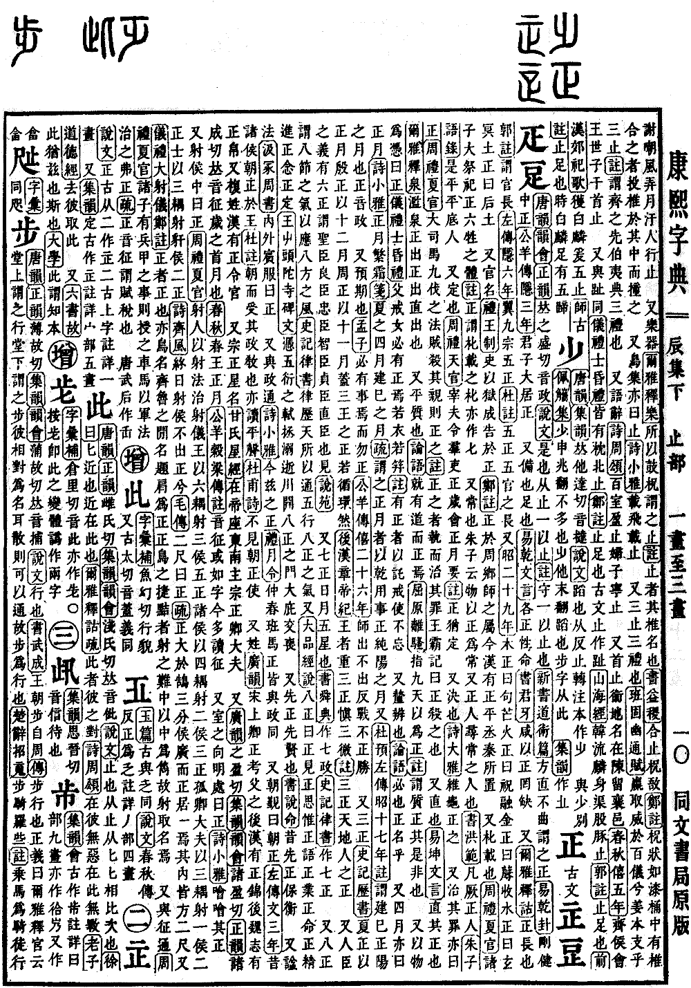 《唐韵》《正韵》雌氏切《集韵》《韵会》浅氏切,𠀤音佌。《说文》止也。从止从匕。匕,相比次也。《徐曰》匕,近也。近在此也。《尔雅·释诂疏》此者,彼之对。《诗·周颂》在彼无恶,在此无斁。《老子·道德经》去彼取此。 又《六书故》此犹兹也,斯也。《大学》此谓知本。