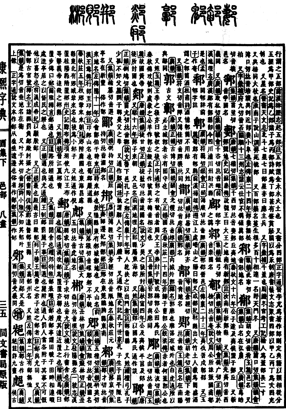 〔古文〕𨟍《唐韵》《正韵》古博切《集韵》《韵会》光镬切,𠀤音椁。《广韵》内城外郭。《释名》郭,廓也。廓落在城外也。《白虎通》所以必立城郭者,示有固守也。 又《正韵》国名。《春秋·庄二十四年》赤归于曹郭公。《公羊传》赤者何,盖郭公也。 又姓。《玉篇》王季之后,亦曰虢叔之后。《正字通》郭之有虢音者,周文王季第封于虢,或称郭公,因为氏。《春秋传》:攻虢则虞救之。《公羊》作郭,《左》《谷》《孟子》作虢,异字转音相近也。 又《五音集韵》苦郭切。与廓同。*考证:〔《春秋·庄二十四年》赤归于曹郭公。《穀梁传》赤者何,盖郭公也。〕 谨按赤者何二句出公羊传,穀梁改公羊。