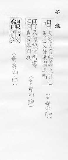 依照乐(yuè ㄩㄝˋ)律发声:~歌。~腔。~段。~功。~和(hé ㄏㄜˊ)。歌~。 高呼,大声叫:~名。~收。 歌曲:唱个~儿。 古同倡,倡导。 姓。