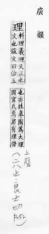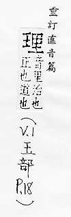 物质本身的纹路、层次,客观事物本身的次序:心~。肌~。条~。事~。 事物的规律,是非得失的标准,根据:~由。~性。~智。~论。~喻。~解。~想。道~。~直气壮。 自然科学,有时特指“物理学”:~科,数~化。~疗。 按事物本身的规律或依据一定的标准对事物进行加工、处置:~财。~事。管~。自~。修~。总~。 对别人的言行作出反应:~睬。答~。 古代指狱官、法官。 姓。