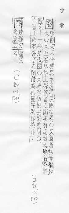 - 周圍:囗,中心:卷。 Component of: ? 蔨 ?