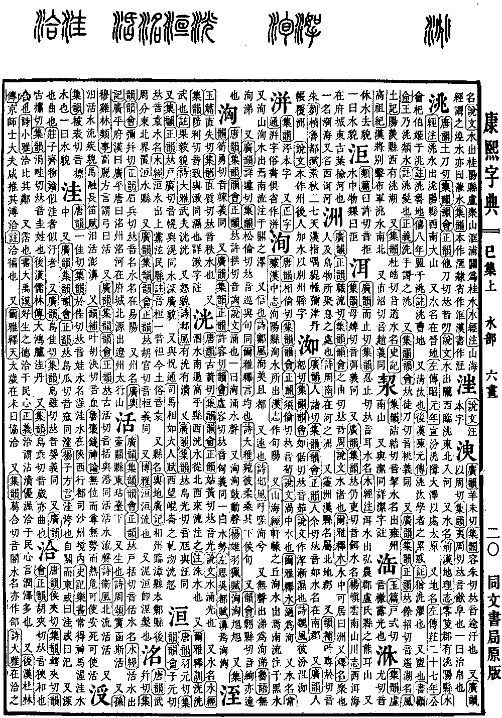 《广韵》《正韵》职流切《集韵》《韵会》之由切,𠀤音周。《说文》水渚也。《尔雅·释水》水中可居曰洲。又《释名》聚也。人及鸟物所聚息之处也。《诗·周南》在河之洲。 又灵洲,汉县名,属北地郡。 又《韵补》叶专于切,音朱。《刘桢·鲁都赋》素秋二七,天汉指隅。缇帷弥津,丹帐覆洲。 《说文》本作州,后人加水以别州县字。