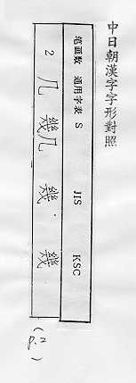 中日朝漢字字形對照
