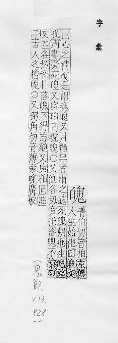 指依附形体而存在的精神:魂~。丢魂落~。魂飞~散。 精神,精力:~力。气~。体~。 古同霸,月始生或将灭时的微光。 古同粕,糟粕。 古同珀,琥珀。