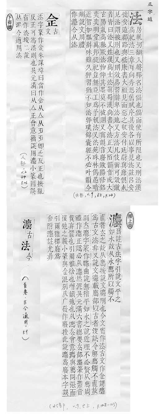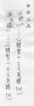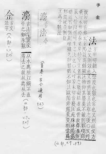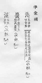 体现统治阶段的意志,国家制定和颁布的公民必须遵守的行为规则:~办。~典。~官。~规。~律。~令。~定。~场。~理。~纪。~盲。~人(“自然人”的对称。指依法成立并能以自己的名义独立参与民事活动,享有民事权利和承担法律义务的社会组织)。~制。~治。犯~。守~。合~。宪~(国家的根本大法)。政~。奉公守~。逍遥~外。 处理事物的手段:办~。设~。手~。写~。 仿效:效~。 标准,规范,可仿效的:~式。~帖。 佛家的道理:佛~。~号。~轮。~像。~门。 道家佛家的所谓拿妖捉怪的技术:~师。~器。~事。 指“法国”:~文。~式大菜。 姓。