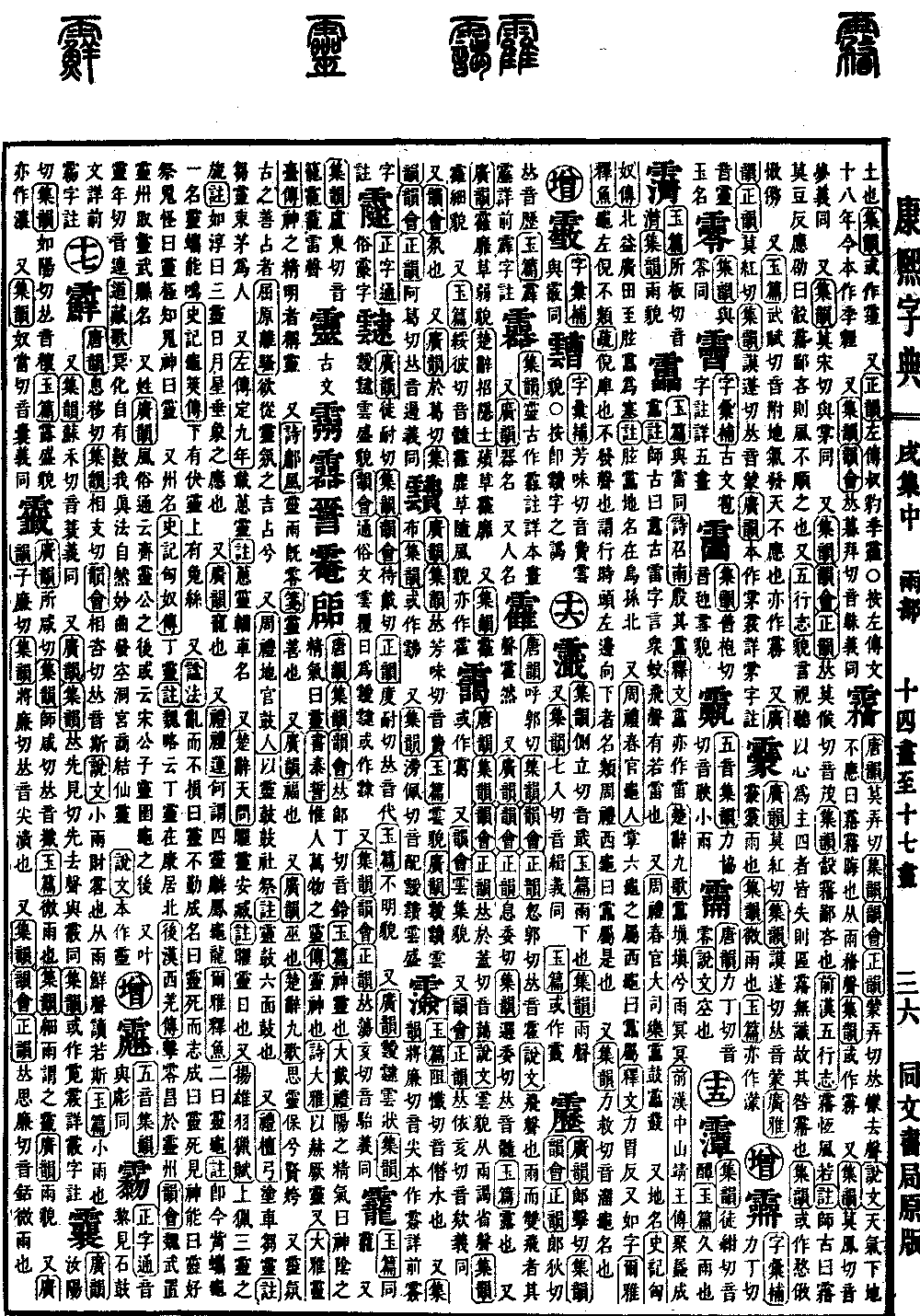 《唐韵》呼郭切《集韵》《韵会》《正韵》忽郭切,𠀤音霍。《说文》飞声也。雨而双飞者,其声霍然。 又《广韵》《韵会》《正韵》息委切《集韵》选委切,𠀤音髓。《玉篇》露也。 又《广韵》靃靡,草弱貌。《楚辞·招隐士》薠草靃靡。 又《集韵》靃靃,细貌。 又《玉篇》绥彼切,音髓。靃靡,草随风貌。亦作霍。