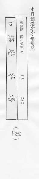 中日朝漢字字形對照