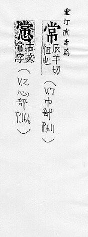 长久,经久不变:~数。~量(亦称“恒量”)。~项。~任。~年。~驻。~住。~备不懈。 时时,不只一次:~~。~客。时~。经~。 普通的,一般的:~识。~务。~规。~情。~人。平~。反~。 姓。