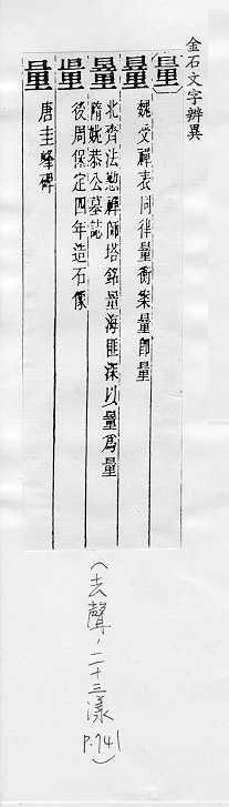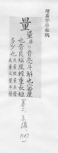 确定、计测东西的多少、长短、高低、深浅、远近等的器具:~具。~杯。~筒。~角器。 用计测器具或其他作为标准的东西确定、计测:计~。测~。~度。~体温。 估计,揣测:估~。思~。打~。