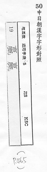 中日朝漢字字形對照
