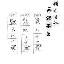 中日朝漢字字形對照