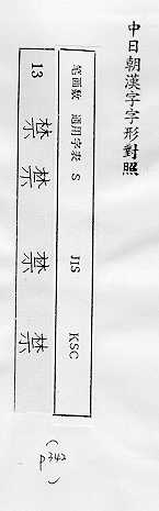 中日朝漢字字形對照