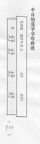 中日朝漢字字形對照