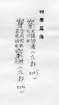 破,透:~透。揭~。~窬(钻洞和爬墙,指盗贼)。~凿。 通过,连通:~过。~行(xíng )。 着(zhuó)衣服鞋袜:~衣。~鞋。