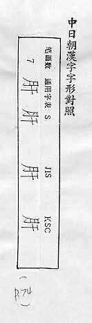 中日朝漢字字形對照