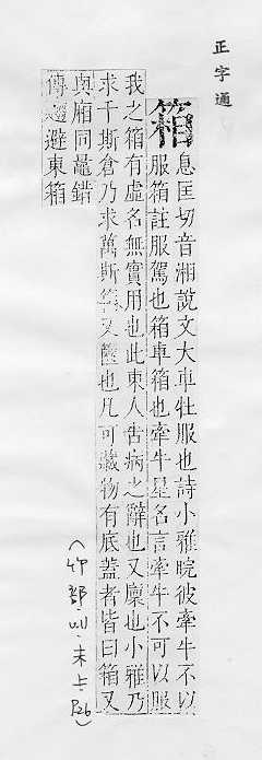 收藏衣物的方形器具,通常是上面有盖扣住:~子。衣~。书~。药~。 像箱子的器具:冰~。风~。信~。集装~。 同厢。===汉英互译===