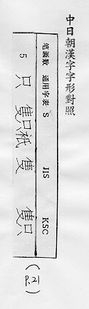 中日朝漢字字形對照